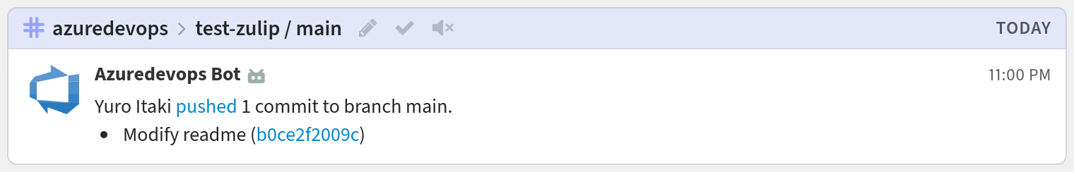 Decide where to send AzureDevOps notifications, and generate the integration URL. You'll be able to configure which branches you'll receive notifications from.